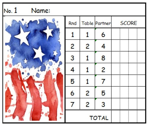 4th July Watercolor Flag 2 Table Progressive Bridge Card Tallies Easy To Read Ebay